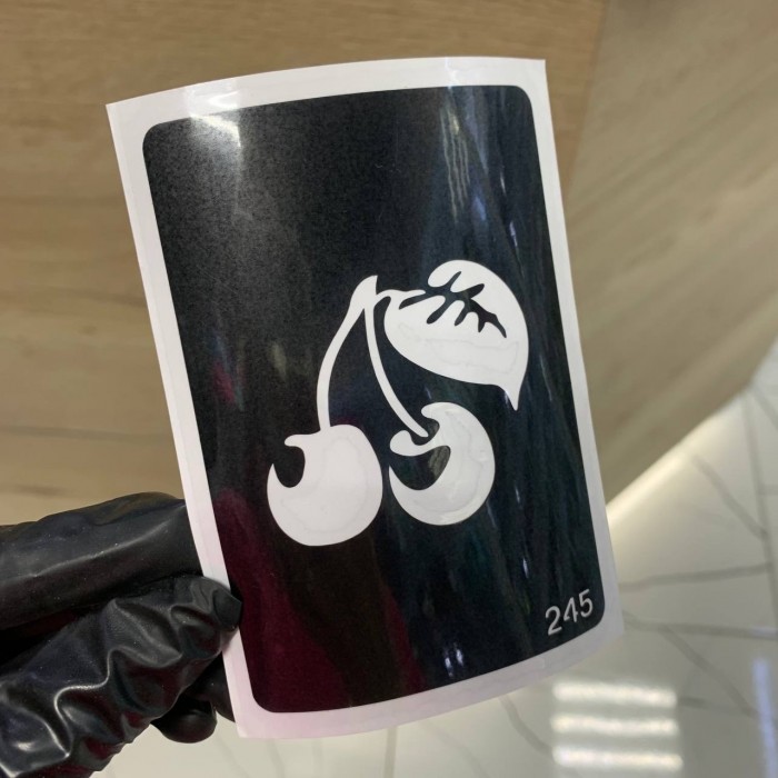 Применяется в боди-арт для изготовления временной татуировки с помощью аэрографов (аэротату), с помощью иранской или индийской хны, для изготовления блеск тату (татуировки блестками). Трафареты так же используются для декорирования поверхностей - стекла, стен в помещениях, художественного декорирования витрин. Трафарет изготовлен из специальной прочной цветной гипоаллергенной пленки на силиконизированной бумаге, в качестве клеящего состава используется полиакрилатный гипоаллергенный клей.