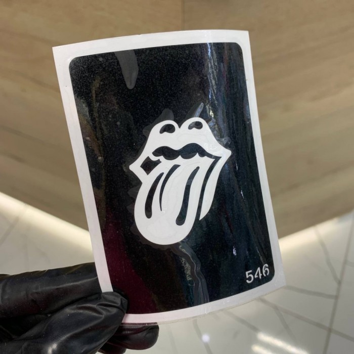 Трафарет изготовлен из специальной прочной цветной гипоаллергенной пленки на силиконизированной бумаге, в качестве клеящего состава используется полиакрилатный гипоаллергенный клей.