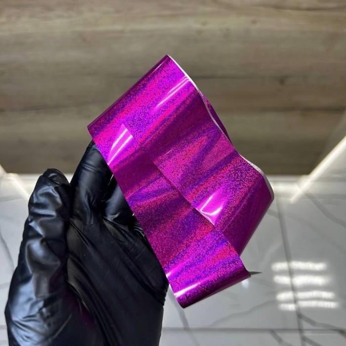 Переводная фольга используется для создания металлических узоров, эффекта жидких камней на ногтях, может имитировать различные сплавы металлов или же просто передавать голографический или хромированный блеск. Эластичная пленка обеспечивает плотное прилегание к ногтевой пластине, а тончайшее напыление позволяет четко отпечатать дизайн. Для более точного переноса рисунка можно использовать клей для фольги.