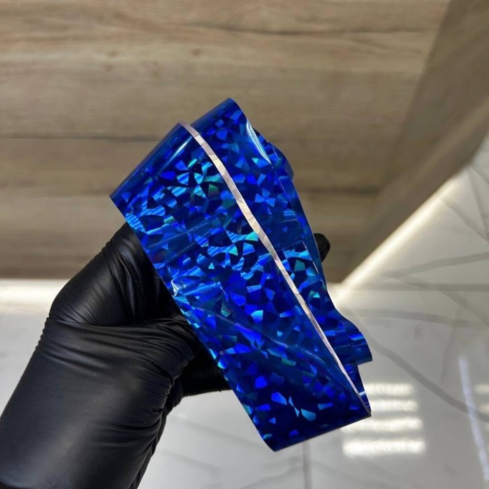 Переводная фольга используется для создания металлических узоров, эффекта жидких камней на ногтях, может имитировать различные сплавы металлов или же просто передавать голографический или хромированный блеск. Эластичная пленка обеспечивает плотное прилегание к ногтевой пластине, а тончайшее напыление позволяет четко отпечатать дизайн. Для более точного переноса рисунка можно использовать клей для фольги.