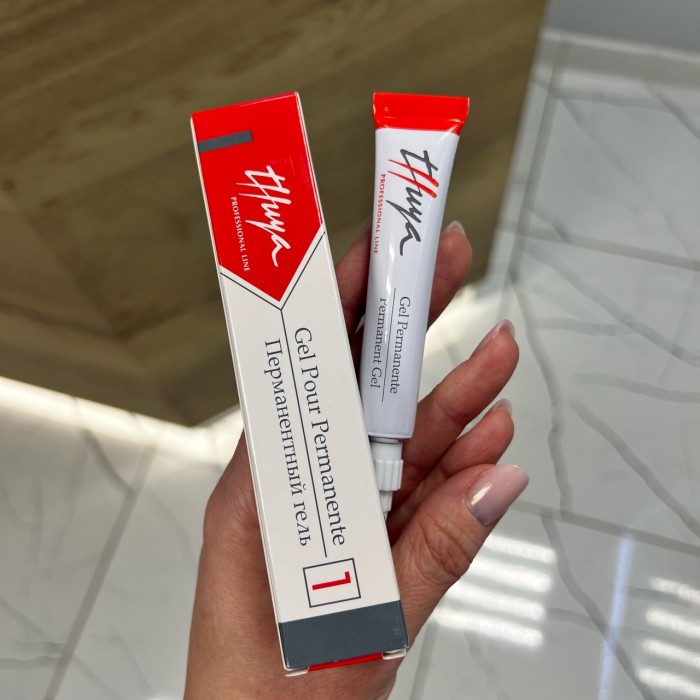 Перманентный гель Thuya Professional Line 15 мл .Свойство: размягчает, открывает чешуйки волоса.В состав перманентного геля входит тиогликолят аммония,который активно разрушает аминокислотные связи в волосе. Внимание! Запах при проведении процедуры- это выделение серо-водорода и является абсолютно нормальным при подобных процедурах в соответствии с химическими процессами.