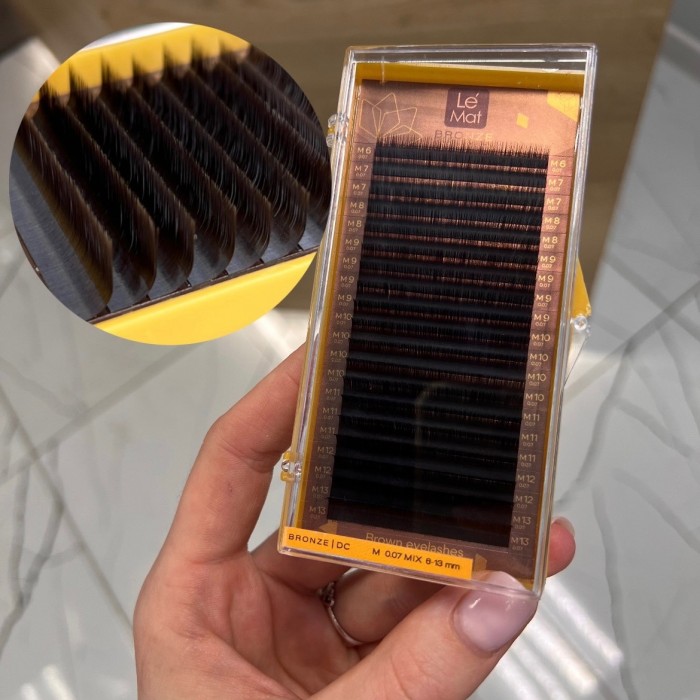 Ресницы M 0.07 коричневые Dark chocolate Le Mat "Bronze" Миксы (6-13 мм)