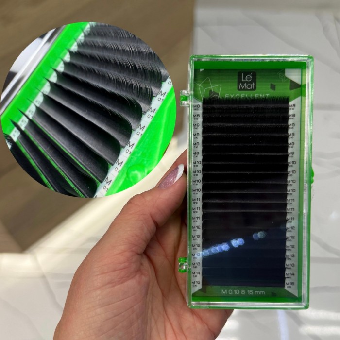 Ресницы «Excellent» создавались с учетом самых важных требований для мастеров.Изготовлены из высококачественного волокна.Упругие и эластичные, что позволяет комфортно работать. Устойчиво держат форму во время носки.Мягкий черный цвет с умеренным блеском подойдет под множество цветотипов.Средняя липкость ленты будет удобна, как для «ручников», так и для «ленточников».Алюминиевая подложка, на которой держится лента не оставляет после себя липкого слоя и не загрязняет поверхность, на которую была наклеена, что позволяет переклеивать линию сколько угодно и она все равно будет оставаться липкой.Белая коробочка, в которой находятся ресницы, может использоваться, как планшет, так как имеет идеальный для этого фон и поверхность: Просто переверните и наклейте туда нужные линии.Работая с ресницами «Excellent», Вы почувствуете заботу о вас с каждой снятой ресничкой.