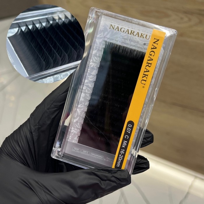 Ресницы на ленте разной длины, от 16 до 20. Всего 16 полосок-лент. Толщина 0,07. Изгиб С