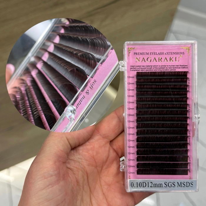 Ресницы на ленте одной длины. Всего 16 полосок-лент. Толщина 0,10. Изгиб Д. Имеют приятный коричневый цвет, без рыжины.
