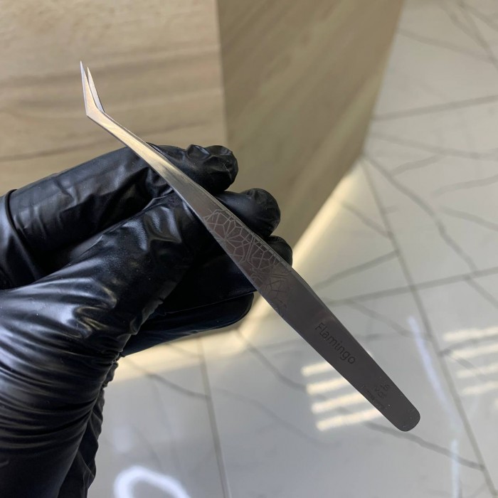 Идеальное смыкание, позволяющее делать любые гипер объёмы. Анатомические пинцеты, которые позволяют мастеру долго работать без боли в руках. Сбоку на металле гравировка, которая даёт удобную посадку в руке без скольжения.