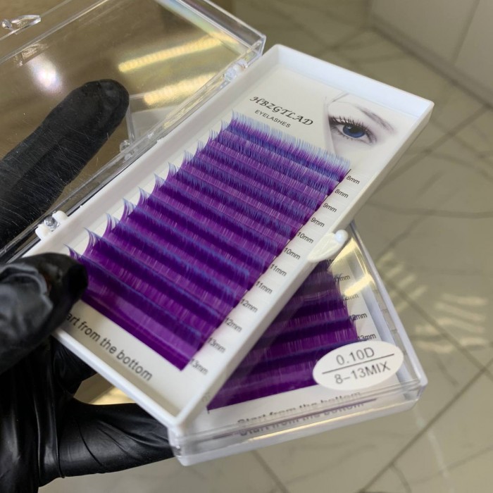Ресницы Фиолетово-голубые омбре D 0.10, миксы