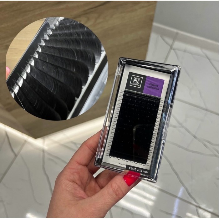 Ресницы Barbara применяются при наращивании ресниц профессиональными лэшмейкерами. Современное волокно позволяет добиться идеального изгиба, при этом ресницы не ломаются и легко снимаются с ленты, на которой благодаря плотному расположению помещено максимальное количество ресниц.