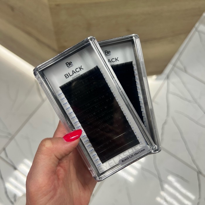 Ресницы Be Perfect Black применяются при наращивании ресниц профессиональными лэшмейкерами. Современное волокно позволяет добиться идеального изгиба, при этом ресницы не ломаются и легко снимаются с ленты, на которой благодаря плотному расположению помещено максимальное количество ресниц.