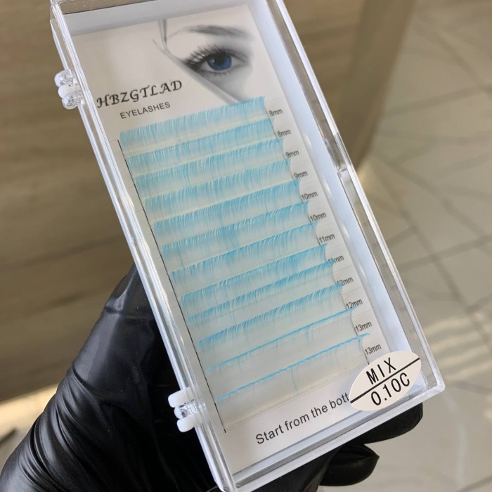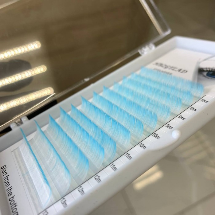 Ресницы бело-голубые "Омбре" изгиб С, толщина 0.10